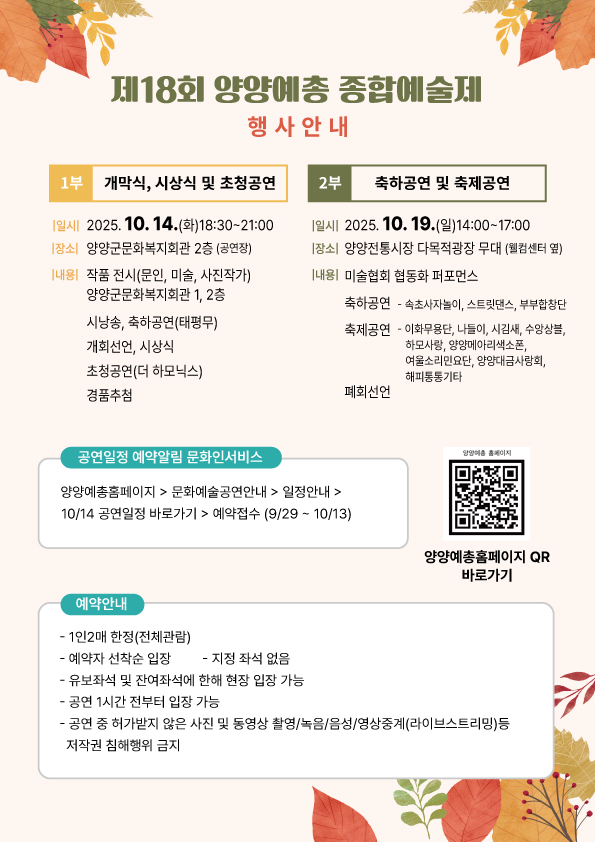 2025년 제18회 양양예총종합예술제 개최(10/14~10/19)