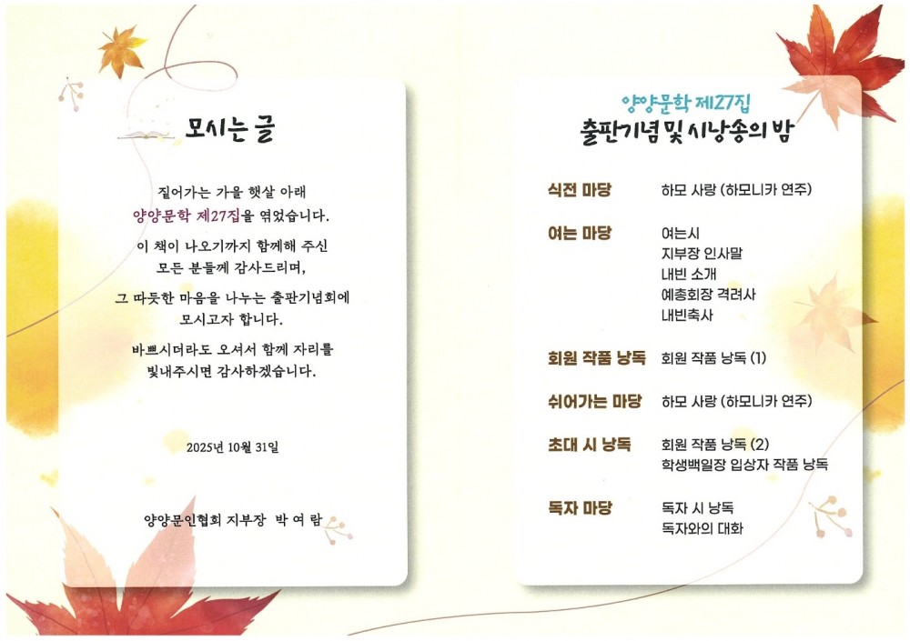 양양문학 제27집 출판기념 및 시낭송의 밤